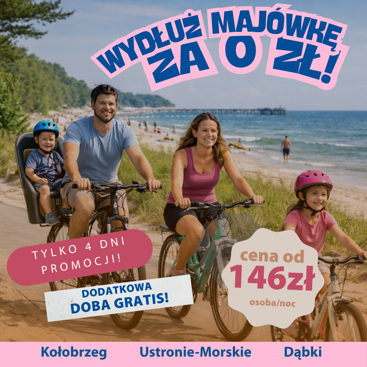 Zarezerwuj majówkowy pobyt nad morzem i odbierz dodatkową dobę GRATIS.